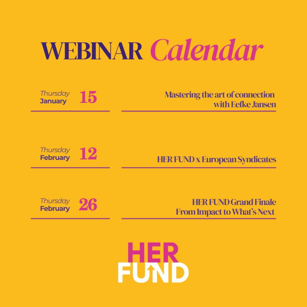 Our HER FUND Xmas webinar has been cancelled, but we’re excited to share an updated series of three webinars designed to support founders, investors and ecosystem partners as the HER FUND project heads towards its conclusion in March 2026.